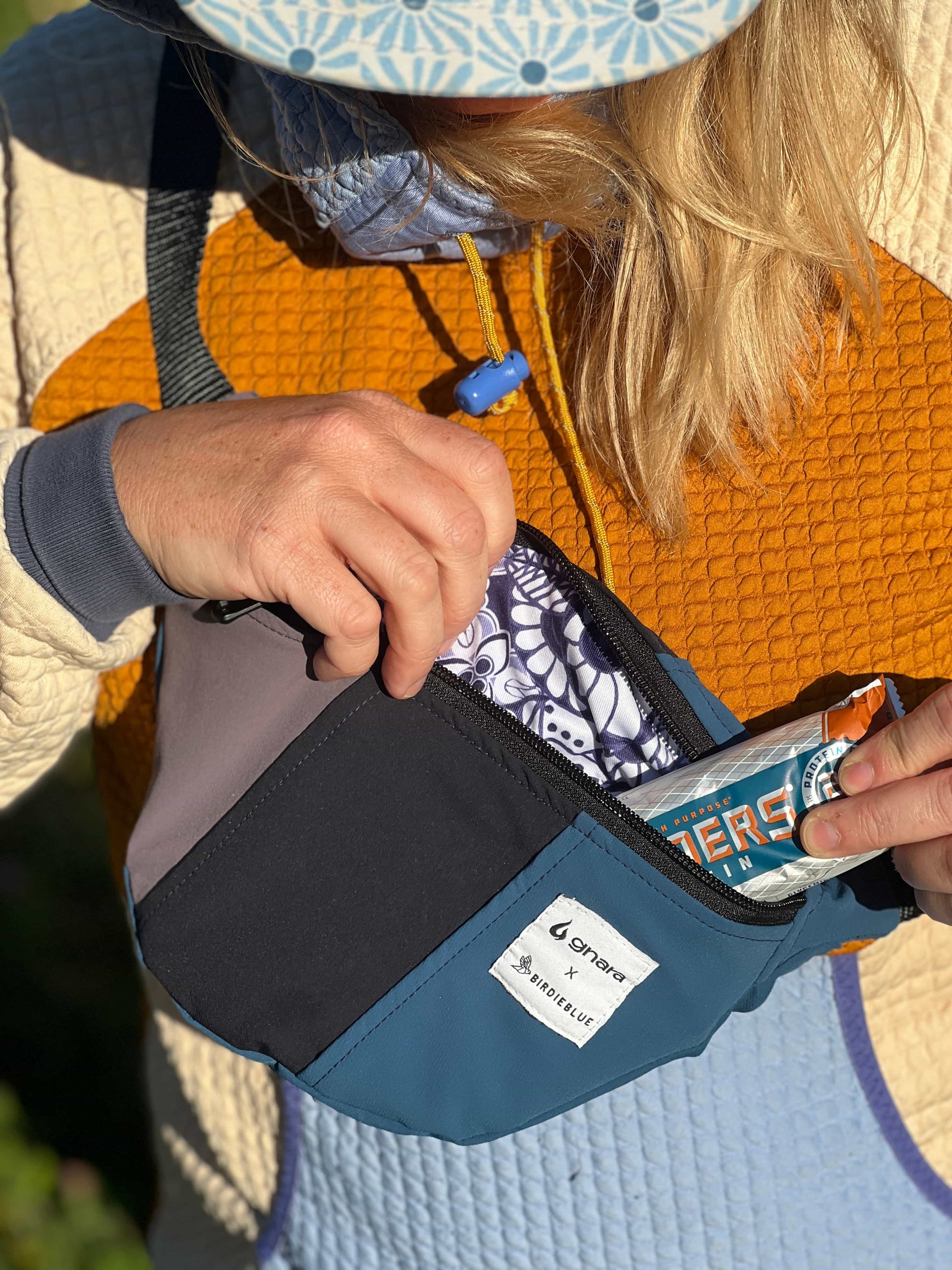 Meet the Gnara x BirdieBlue Upcycled Fanny Pack. Our signature hip bag, now made from real-deal Gnara pants that were saved from the landfill and stitched into something completely new.